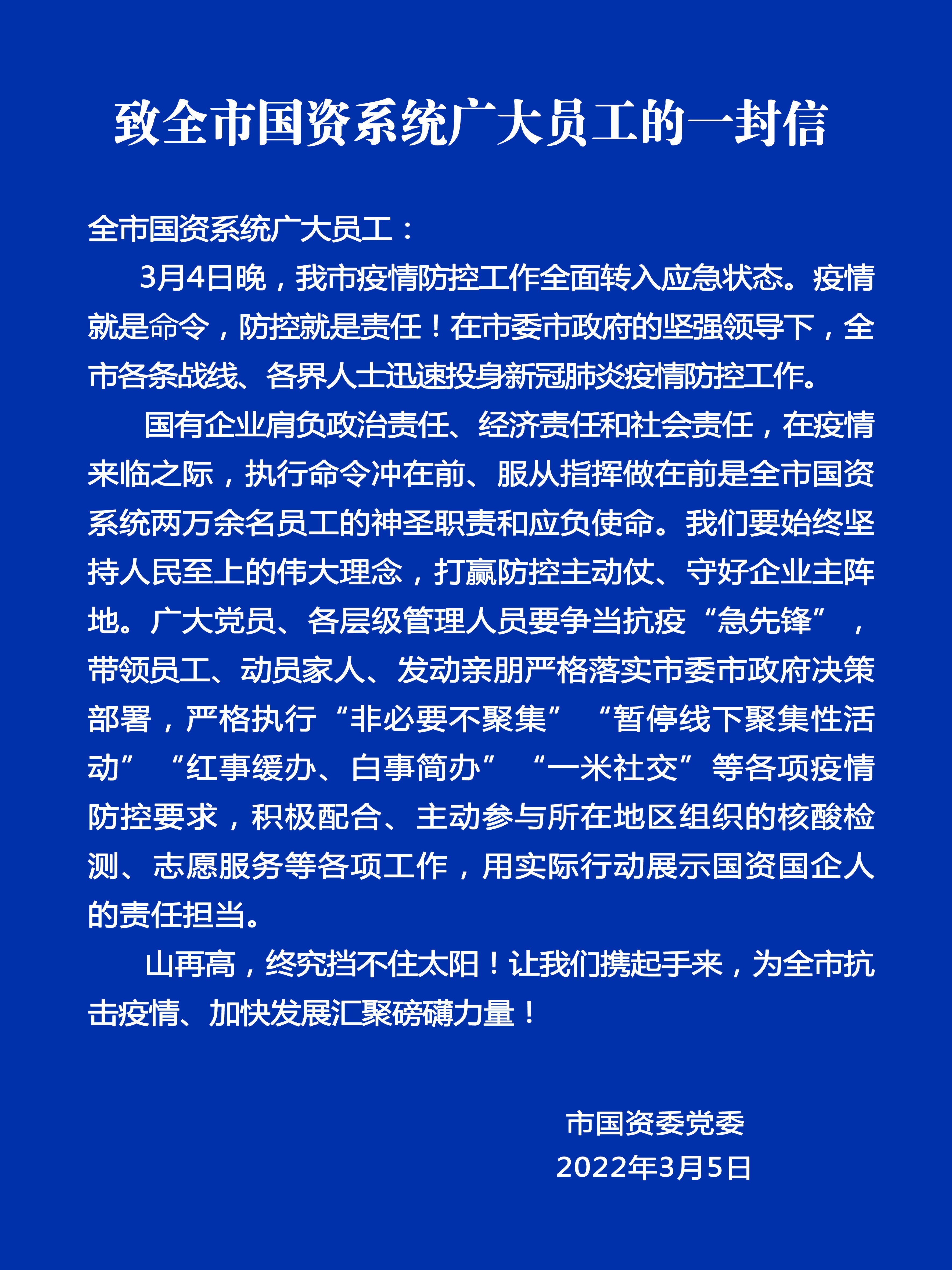 致全市國(guó)資系統(tǒng)廣大員工的一封信