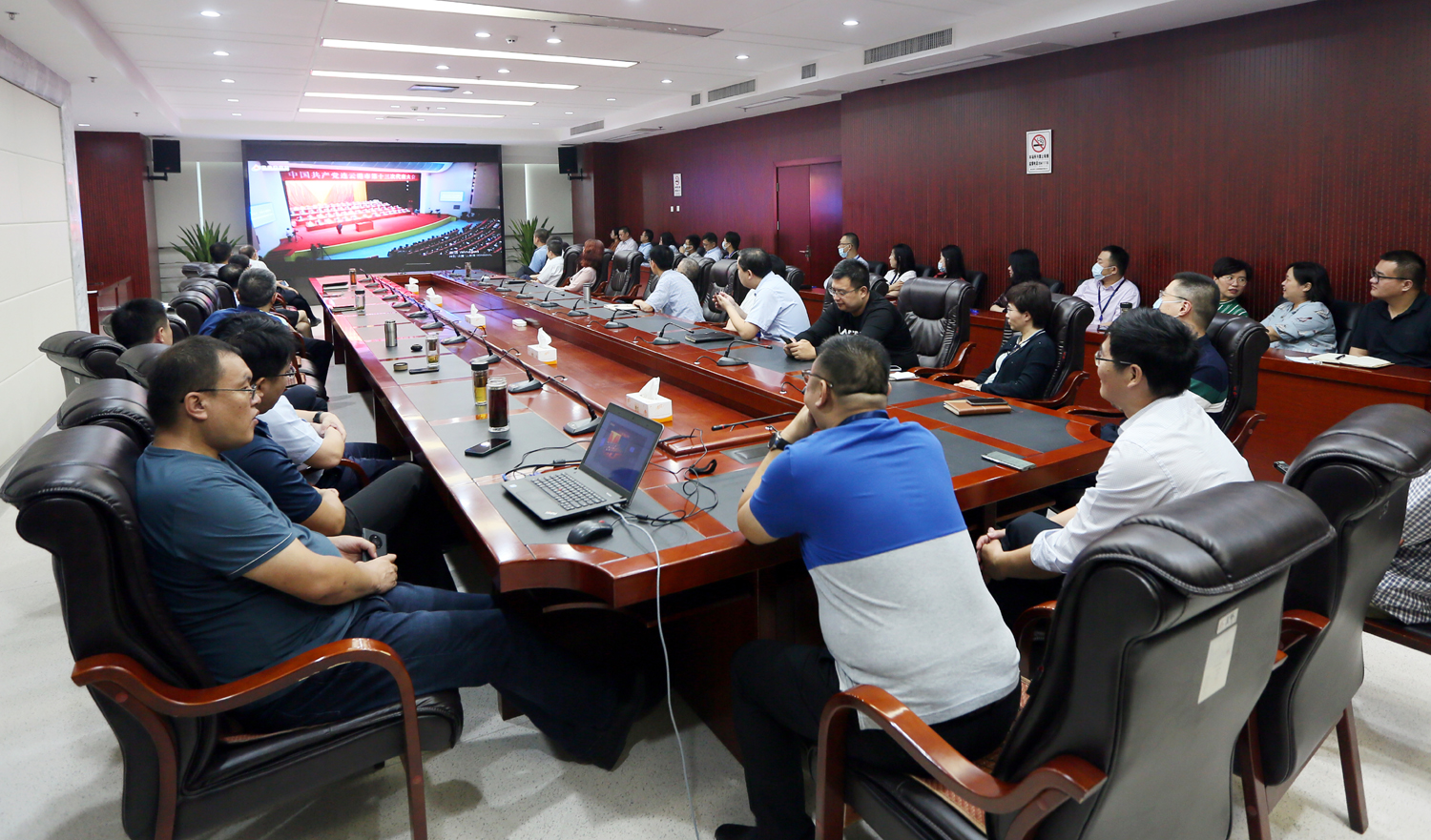 集團(tuán)公司領(lǐng)導(dǎo)班子成員在總部會(huì)議室收看了開幕盛況。