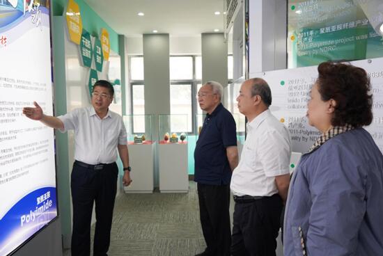 王士華對孫晉良、陳文興院士一行表示熱烈歡迎,并陪同參觀了公司展廳、生產(chǎn)車間以及國家碳纖維復合材料試驗公共服務平臺。在展廳,王士華詳細匯報了企業(yè)的發(fā)展歷程、產(chǎn)品功能特色、應用領域,以及產(chǎn)品在特種防護、航空航天等領域應用研究進展。兩位院士與對奧神新材料公司近幾年快速發(fā)展給予高度評價,充分肯定了奧神新材對我國高性能聚酰亞胺纖維及其后道制品研發(fā)工作作出的突出貢獻。
