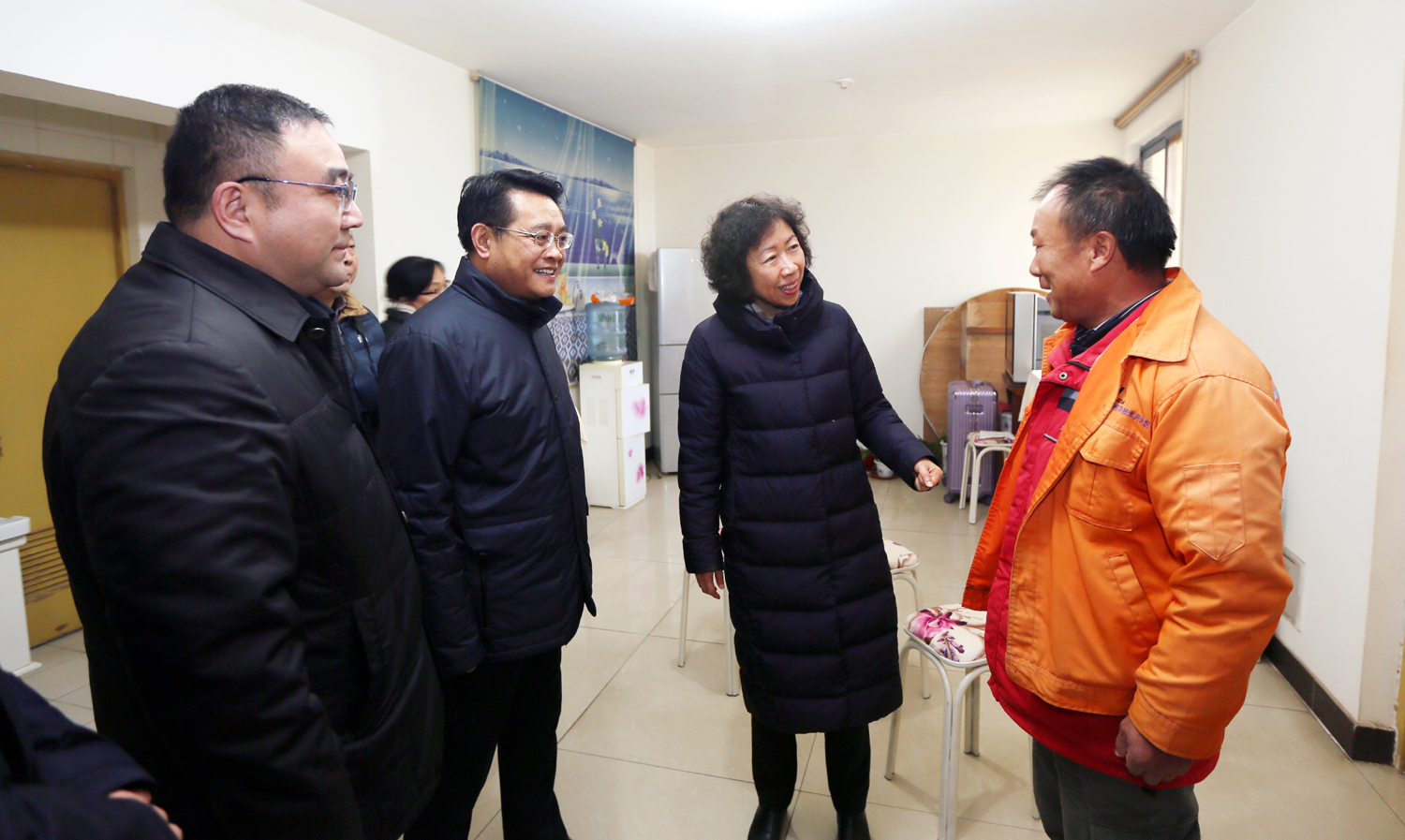 在新中國成立前參加工作的全國勞動模范王壽明家中,朱勁松代表省總工會向老勞模致以崇高的敬意和誠摯的問候,感謝他為國家和企業(yè)發(fā)展作出的突出貢獻。并和老人親切交談,詳細了解他的生活狀況和健康情況。朱勁松說,勞模是時代的先鋒、社會的楷模,走進新時代,我們更要將勞模精神傳承好、弘揚好,凝聚強大的發(fā)展正能量。朱勁松囑咐老人要保重身體,并祝愿他新春快樂,安享晚年。