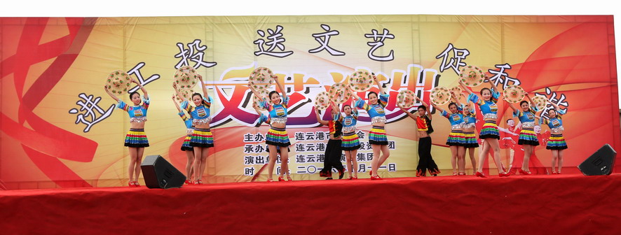 10月11日下午,由連云港市總工會主辦、集團(tuán)公司承辦、市演藝集團(tuán)演出的“進(jìn)工投、送文藝、促和諧”文藝演出在灌西投資公司精彩上演,市總工會副主席陳健、集團(tuán)公司工會主席戴鴻鳴等領(lǐng)導(dǎo),以及1000余名觀眾觀看了演出。