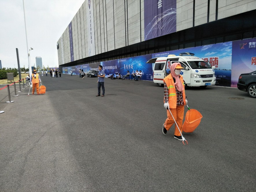9月14日,連續(xù)忙碌了兩個(gè)禮拜的職工們還沒(méi)來(lái)得及休息,便又投入到“連博會(huì)”的準(zhǔn)備工作中去。由于本屆“連博會(huì)”共有來(lái)自27個(gè)國(guó)家和地區(qū)的420家企業(yè)參展,展覽總面積達(dá)3.7萬(wàn)平方米,各家展商在布置展臺(tái)時(shí),各類生活垃圾、裝修垃圾等一度將該公司布設(shè)的100多個(gè)垃圾桶都塞滿了,在安排好人工清理的同時(shí),該公司還安排垃圾清運(yùn)車對(duì)積存垃圾進(jìn)行清理清運(yùn),組織灑水車對(duì)會(huì)場(chǎng)及周邊道路進(jìn)行沖洗,一直到9月18日晚上9點(diǎn)左右才完成準(zhǔn)備工作。19日“連博會(huì)”開(kāi)幕當(dāng)天,負(fù)責(zé)現(xiàn)場(chǎng)保潔工作的職工們?cè)缟?/span>6點(diǎn)多就趕到了會(huì)場(chǎng),冒雨在會(huì)場(chǎng)周邊開(kāi)始忙碌,一臺(tái)大型清掃車和一臺(tái)灑水車也在會(huì)場(chǎng)旁隨時(shí)待命。到了中午,當(dāng)展商們?cè)谑覂?nèi)小憩的時(shí)候,室外的職工們?yōu)榱瞬坏⒄`事,站在風(fēng)口匆匆地扒拉兩口混雜著雨水的盒飯,就又投入到緊張的清理工作中去。僅19號(hào)開(kāi)幕當(dāng)天,累計(jì)清理各類垃圾7噸左右,為“連博會(huì)”的正常召開(kāi)提供了一個(gè)干凈、整潔的會(huì)場(chǎng)環(huán)境。