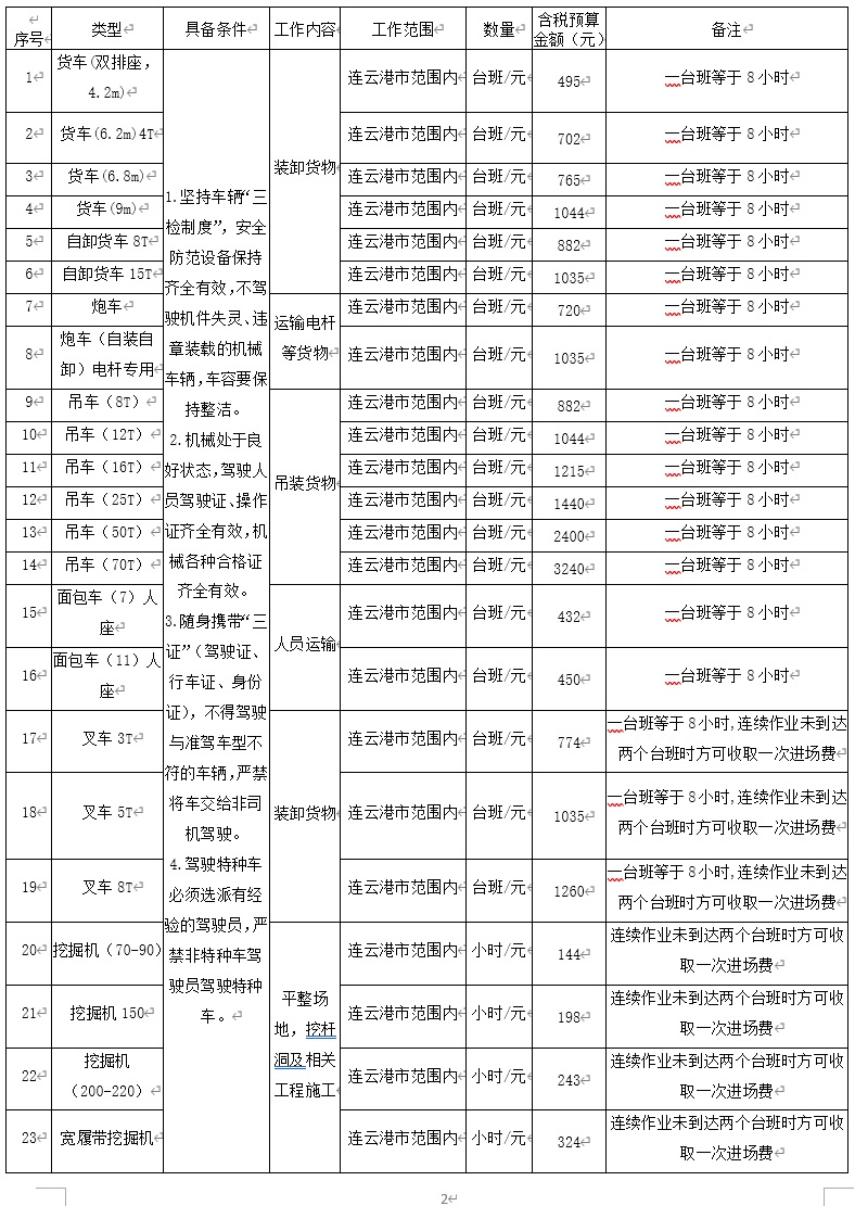 2.采購內(nèi)容:連云港工投集團供電工程分公司機械、車輛租賃