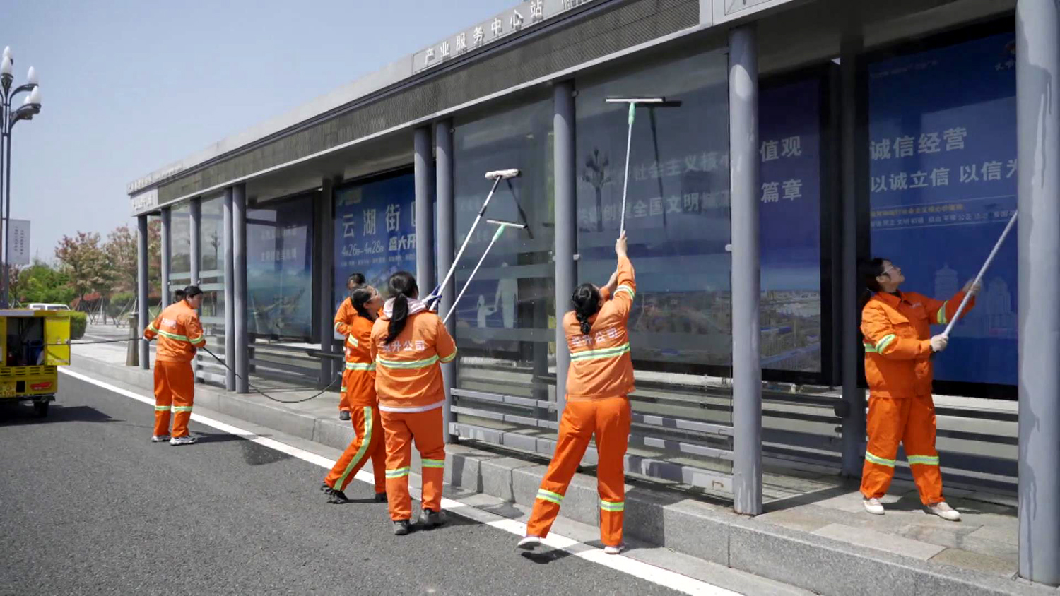 龔飛作為女子班班長(zhǎng),她不僅要管理好徐圩新區(qū)核心區(qū)域50萬(wàn)平方米道路保潔和8個(gè)站臺(tái)清洗、施工路段的垃圾清撿“規(guī)定動(dòng)作”,同時(shí)還要完成保潔面積40000平方米“自選動(dòng)作”。