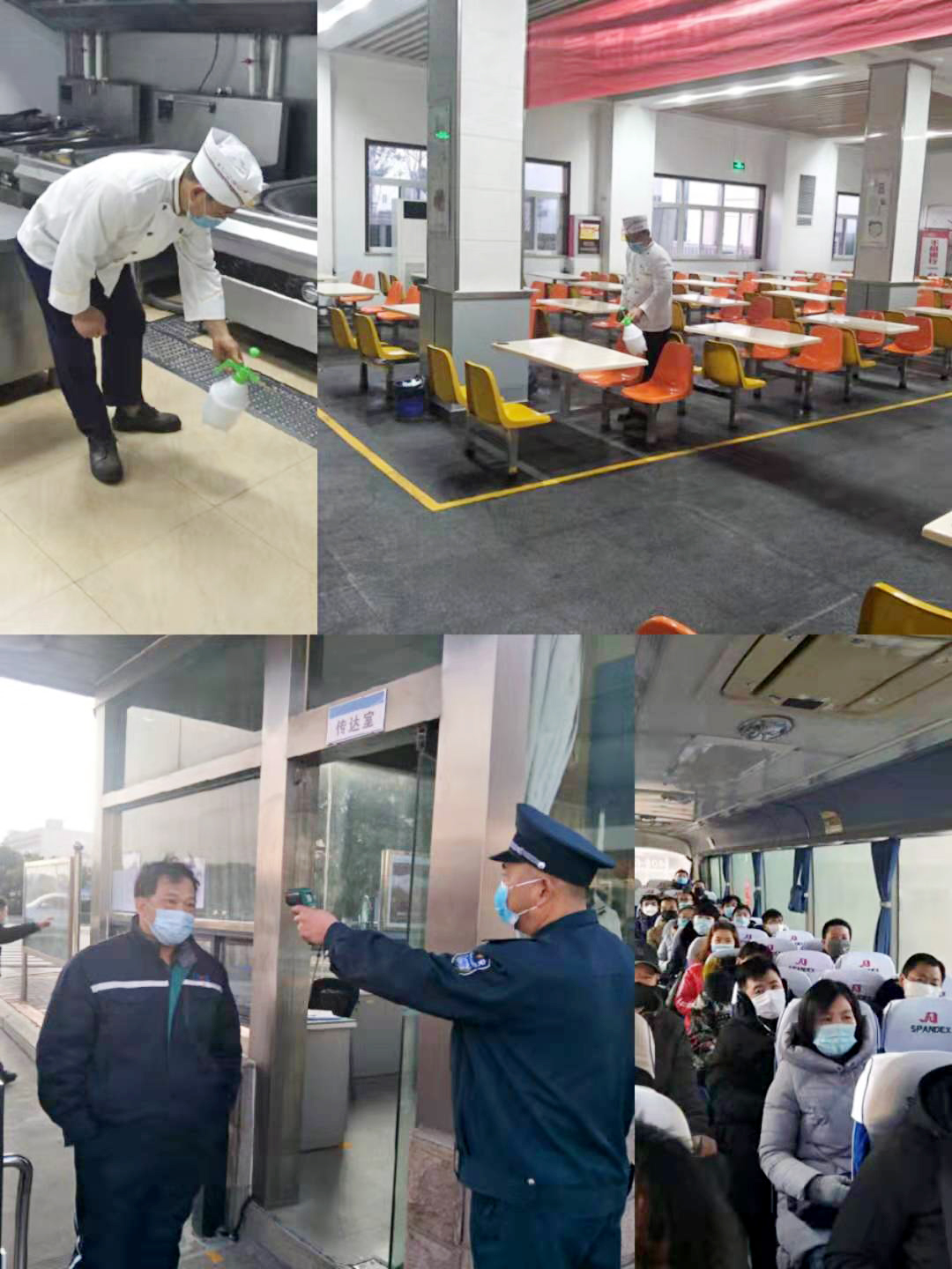 全力做到“三個全覆蓋”。一是消殺全覆蓋,做到無死角。結(jié)合疫情防控實(shí)施方案全面開展衛(wèi)生整治消殺,對進(jìn)廠車輛、食堂、廁所、辦公區(qū)、操作平臺、作業(yè)電梯等每4小時進(jìn)行全面消毒。二是摸排全覆蓋,做到無縫隙。以部門為單位進(jìn)行全員摸排并建立日報制度。在公司門口使用溫度檢測儀器測量入廠人員體溫,體溫正常允許進(jìn)入,發(fā)現(xiàn)體溫異常人員立即上報公司安全部或者值班領(lǐng)導(dǎo)執(zhí)行應(yīng)急隔離救援。對外地回廠人員,特別對疫區(qū)或途徑疫區(qū)的到廠人員進(jìn)行重點(diǎn)摸排。三是宣傳全覆蓋,做到無遺漏。利用公司宣傳欄、紅色長廊、網(wǎng)站、公眾號、微信群等宣傳陣地開展宣傳培訓(xùn),對員工開展疫情防控知識培訓(xùn)。將公司的防控措施、應(yīng)急預(yù)案、就醫(yī)流程、疫情防護(hù)等應(yīng)知應(yīng)會的防疫知識傳達(dá)到每一位員工,引導(dǎo)他們科學(xué)防疫。