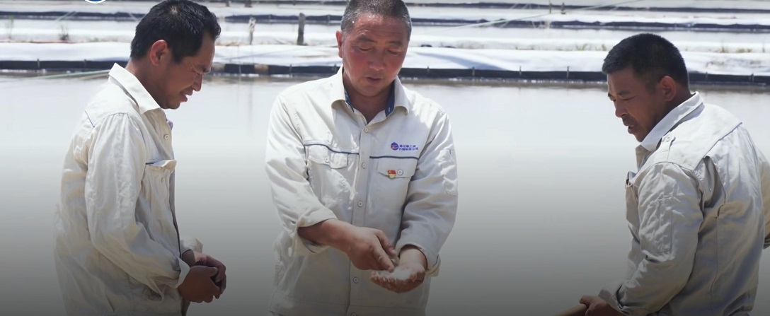 烈日之下,汗水也閃爍著光芒。在日曬制鹽埒南分公司十一班,筆者看到工人們正在火毒毒的烈日下修補(bǔ)塑布,盡管已經(jīng)錯(cuò)開相對(duì)高溫時(shí)間上班,但仍避免不了頭頂太陽(yáng)烤、腳下鹵水蒸,個(gè)個(gè)都像剛從水里出來(lái)一樣,渾身上下沒有一點(diǎn)干的地方。“天氣這么熱吃得消嗎?”筆者問班長(zhǎng)章保衛(wèi)?!傲?xí)慣了,不礙事。”他扯起衣襟抹了一把臉上淌下來(lái)的汗水滿不在乎地說(shuō):“眼下正值雨季,戰(zhàn)高溫、搶睛天,防雨抗災(zāi)頭等大事,不這樣苦干不行啊。”“全年產(chǎn)鹽任務(wù)能完成?”“只要不遭受大的自然災(zāi)害,完成年計(jì)劃沒問題!”他回答得干脆,也很自信。