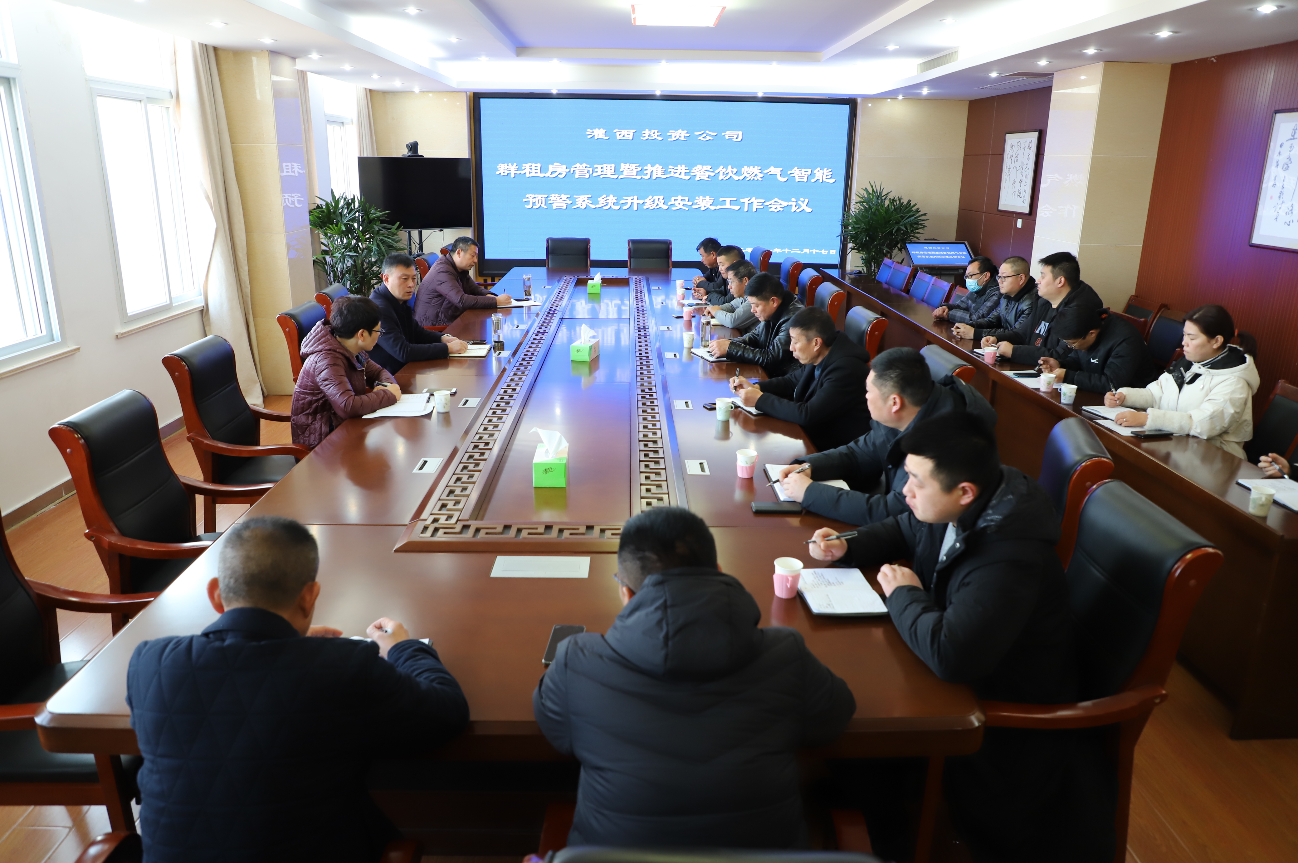 12月17日上午,灌西投資公司在機(jī)關(guān)三樓會(huì)議室召開(kāi)“群租房管理暨推進(jìn)餐飲燃?xì)庵悄茴A(yù)警系統(tǒng)升級(jí)安裝”工作會(huì)議,公司常務(wù)副總經(jīng)理吳衛(wèi)平、工會(huì)主席王宏、安全監(jiān)管部以及各單位負(fù)責(zé)人參會(huì)。