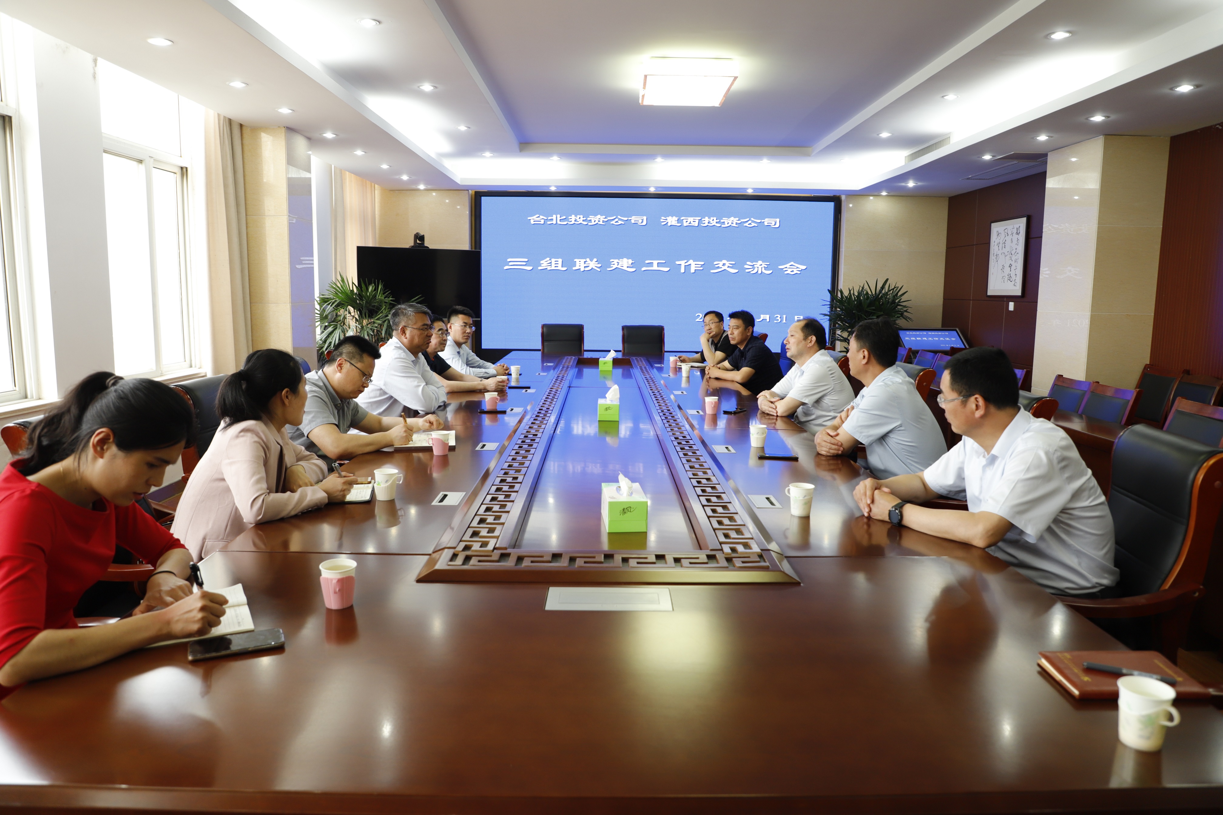 5月31日,臺北投資公司黨委書記、董事長、總經(jīng)理王德志帶領三組聯(lián)建調(diào)研組來到灌西投資公司參觀交流。灌西投資公司黨委書記、董事長、總經(jīng)理李國文、常務副總經(jīng)理吳衛(wèi)平、黨委副書記、工會主席王宏陪同參觀、座談。