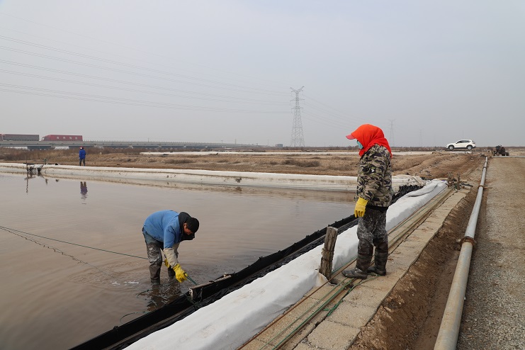 在日曬制鹽新河分公司零班生產(chǎn)現(xiàn)場,該班全體員工正在班長王興東的帶領(lǐng)下有條不紊的忙碌著,他們有的在對(duì)繩、有的在活碴、有的在破碴。據(jù)了解,由于近期夜間氣溫仍然較低,導(dǎo)致鹽池內(nèi)的原鹽結(jié)塊現(xiàn)象較為嚴(yán)重,且對(duì)原鹽質(zhì)量有較大影響,因此原本于25日開始的扒鹽工作現(xiàn)在已經(jīng)全部暫停,待氣溫進(jìn)一步升高再繼續(xù)扒鹽工作。