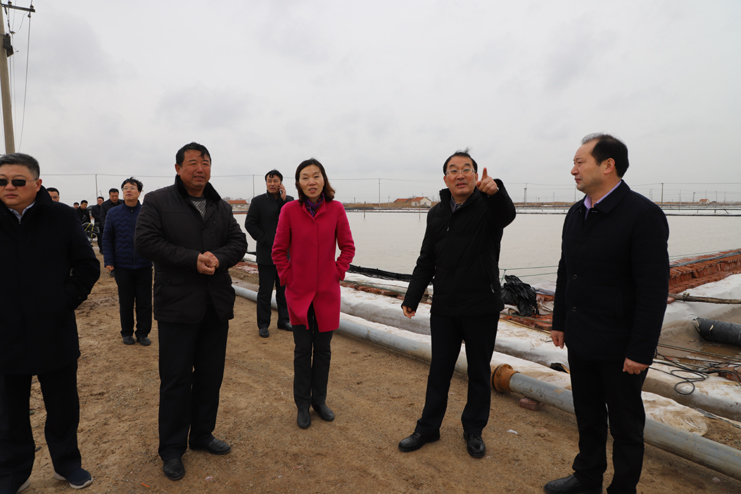 胡建明總經(jīng)理一行分別到原鈣液復(fù)曬區(qū)養(yǎng)殖池塘改造施工現(xiàn)場和新河制鹽分公司五班的扒鹽現(xiàn)場進(jìn)行實地調(diào)研,詳細(xì)了解工程的施工情況和日曬制鹽公司的生產(chǎn)情況。在原鈣液復(fù)曬區(qū),只見彩旗招展,幾臺挖掘機(jī)正在緊張施工之中,對灘地進(jìn)行養(yǎng)殖池塘改造,工程施工人員搶時間,抓進(jìn)度,爭取在養(yǎng)殖旺季來臨之時,完成工程施工投入養(yǎng)殖生產(chǎn)。日曬制鹽公司目前已經(jīng)出動五臺扒鹽機(jī)組投入到春季扒鹽工作中來,預(yù)計上半年將完成25萬噸的扒鹽任務(wù)。隨后在機(jī)關(guān)三樓會議室召開流動辦公會,投資公司董事長李國文對灌西投資公司和日曬制鹽公司的生產(chǎn)經(jīng)營情況進(jìn)行了匯報。他表示,2018年,灌西投資公司將積極迎接挑戰(zhàn),以“三超兩增一確保”為工作目標(biāo),產(chǎn)鹽58萬噸,實現(xiàn)綜合利潤翻一番工作任務(wù)而努力奮斗。同時也提出,公司當(dāng)前面臨原料礦鹵要漲價、原鹽一線員工年齡老化、職工小區(qū)房產(chǎn)證協(xié)調(diào)辦理等諸多發(fā)展難題,希望集團(tuán)公司領(lǐng)導(dǎo)給予高度重視。集團(tuán)公司領(lǐng)導(dǎo)相繼發(fā)言,現(xiàn)場辦公,針對各類問題分別進(jìn)行了研討,提出建議,解決問題。