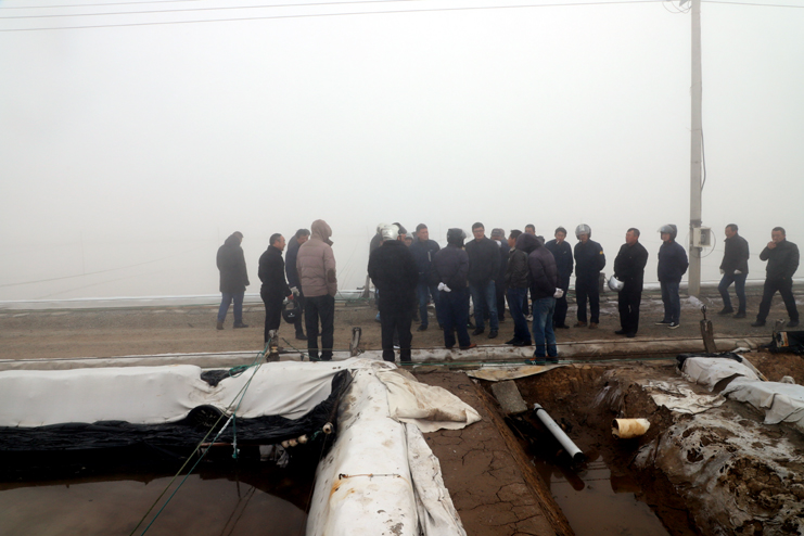 會前,與會人員一起現(xiàn)場參觀了埒南制鹽分公司9班的池道堰格,對硫酸鈣清理和土塘清淤工作作現(xiàn)場指導說明,隨后在生產服務公司會議室召開冬準動員大會,會議對冬準工作進行了全面部署,副總經理古浩光對冬準工作提出要求,副總經理張學峰宣讀了表彰“秋扒”工作先進機組先進個人和安全質量標兵的決定,紀委書記、工會主席王宏宣讀了關于開展“大干冬準勞動競賽”活動方案,新河、埒南制鹽分公司四名班組長就如何干好冬準工作分別作表態(tài)發(fā)言。