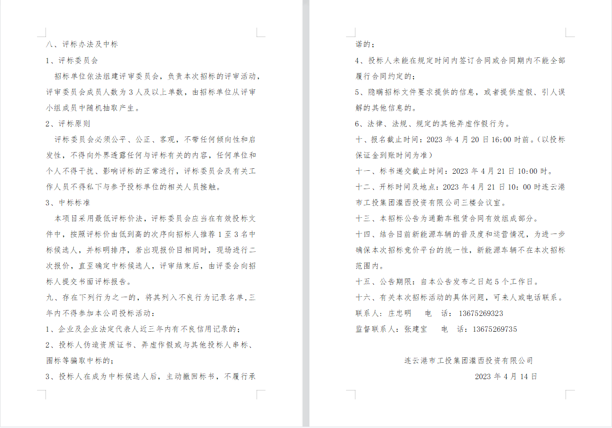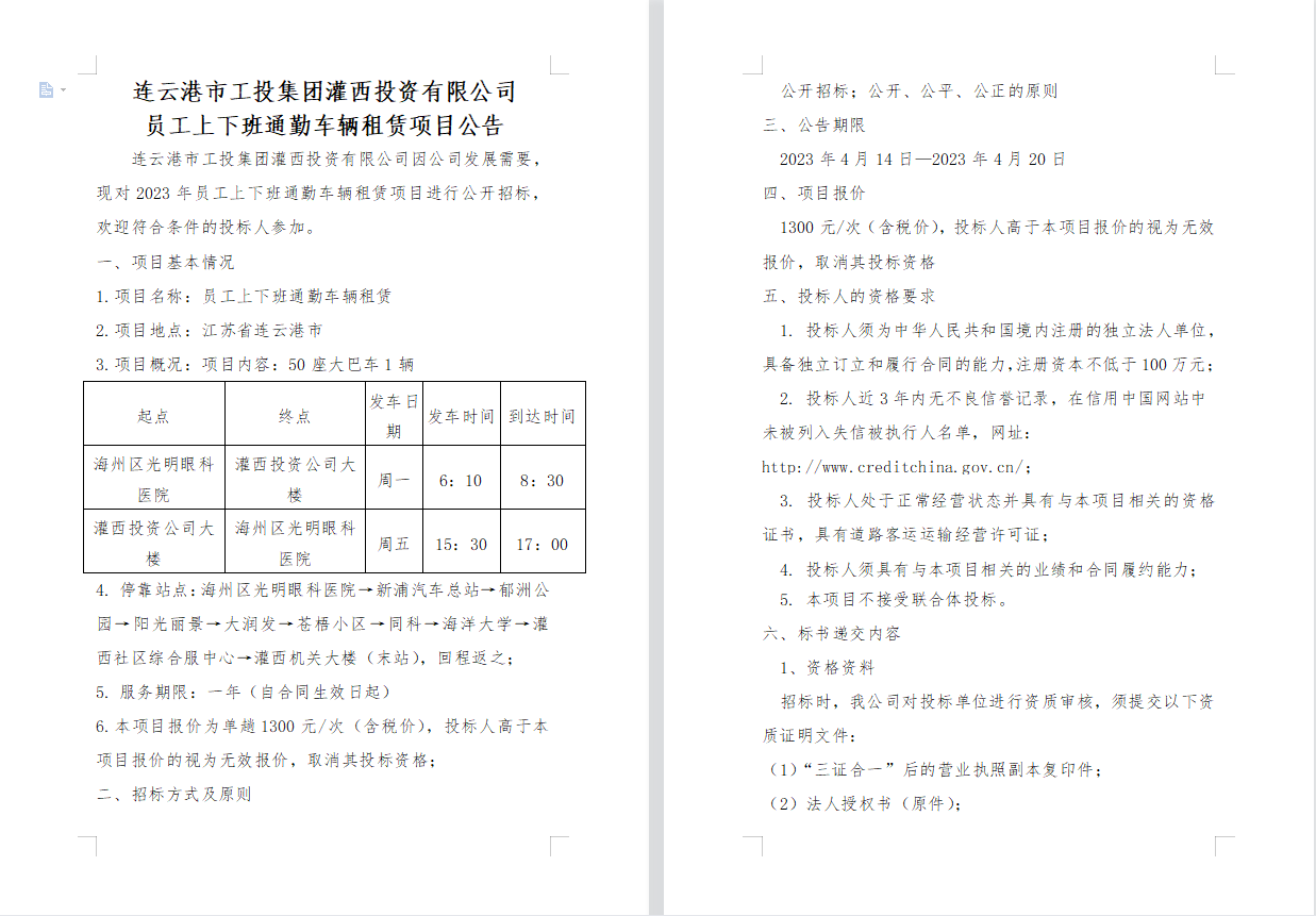 連云港市工投集團(tuán)灌西投資有限公司 員工上下班通勤車輛租賃項目公告