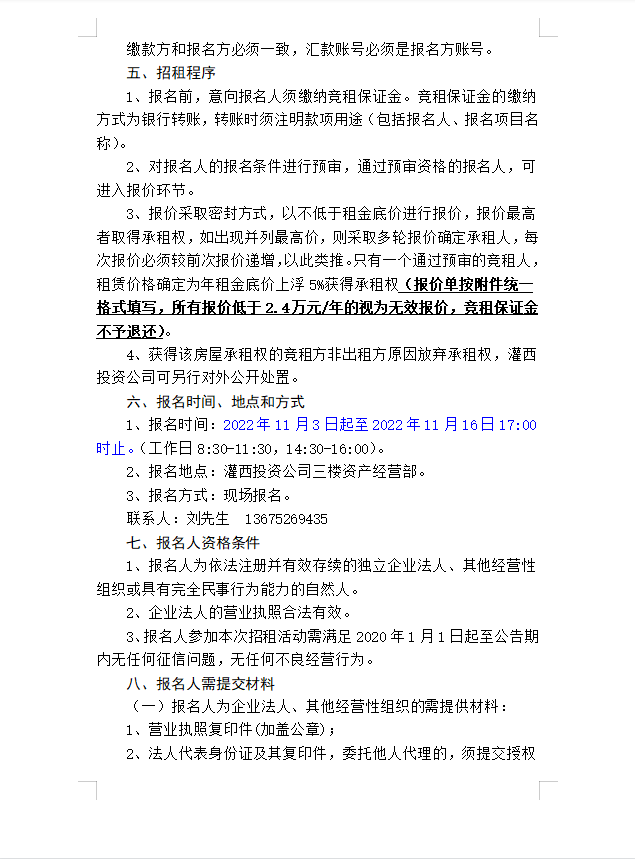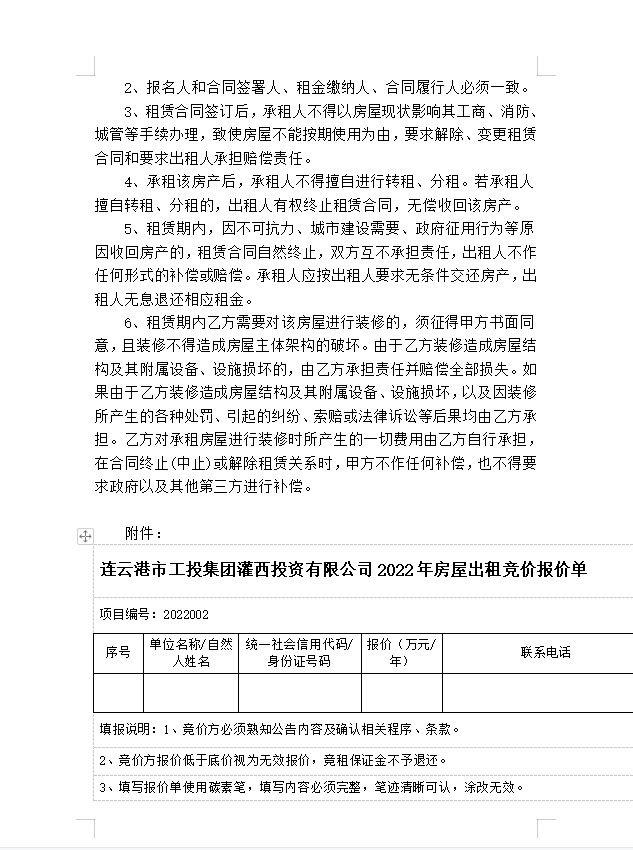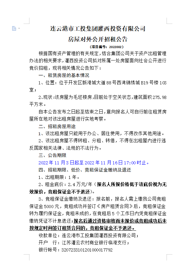 連云港市工投集團(tuán)灌西投資有限公司房屋對(duì)外公開(kāi)招租公告