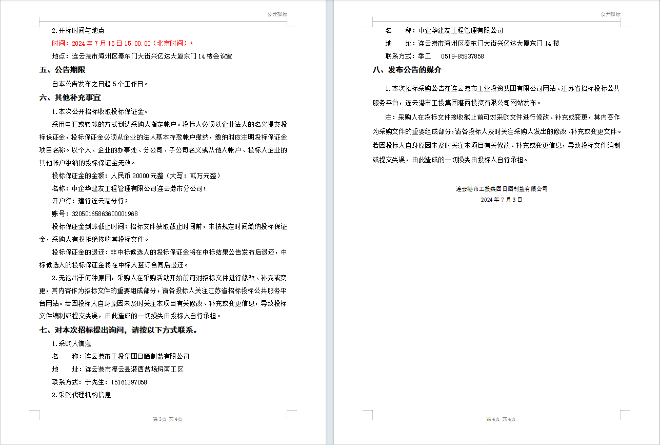 連云港市工投集團(tuán)日曬制鹽有限公司液體氯化鈣(鈣液)采購(gòu)招標(biāo)公告(二次)
