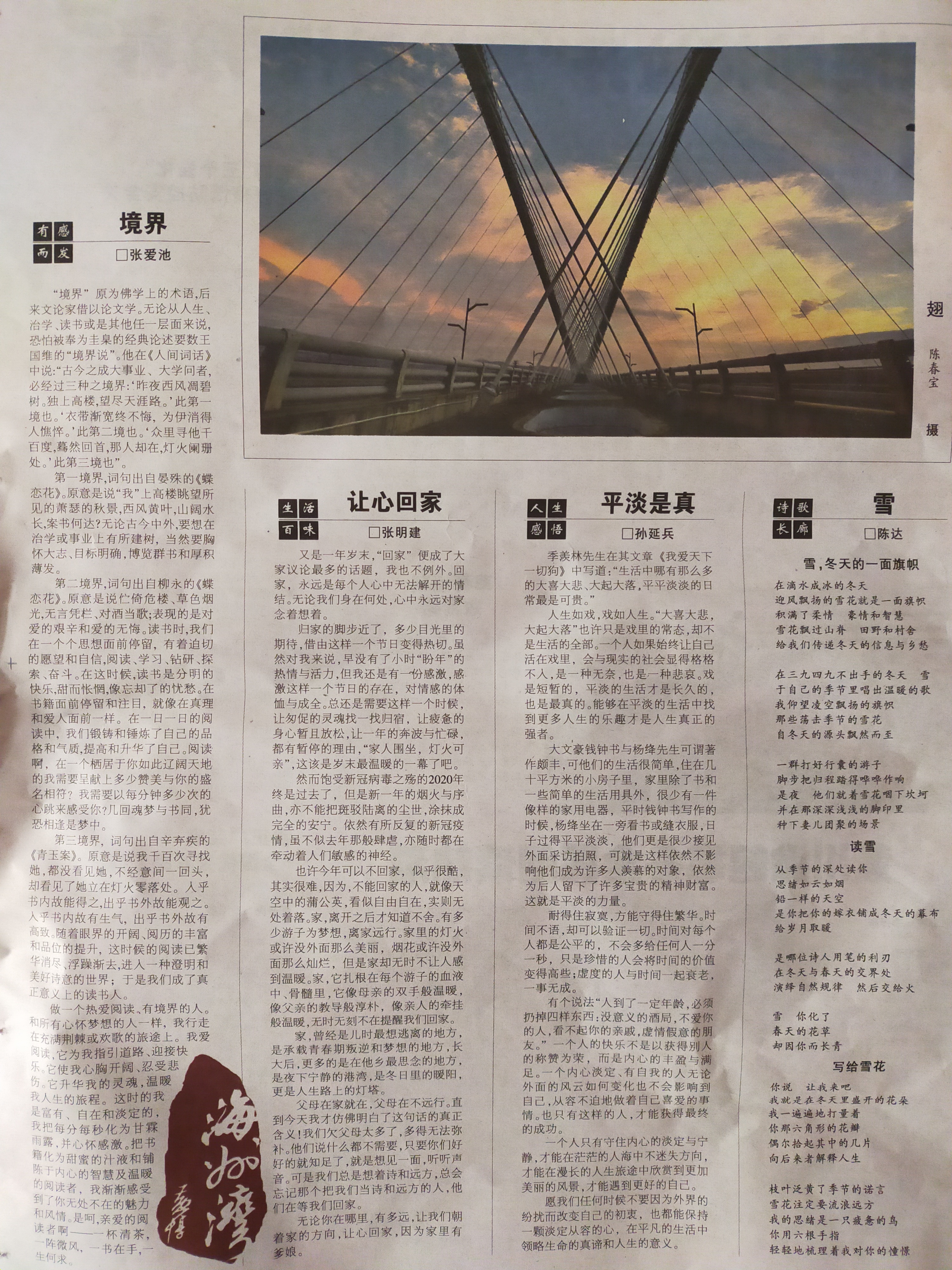 歸家的腳步近了,多少目光里的期待,借由這樣一個節(jié)日,變得熱切。雖然對我來說,早沒有了小時“盼年”的熱情與活力,但我還是有一份感激,感激這樣一個節(jié)日的存在,對情感的體恤與成全。總還是需要這樣一個時候,讓匆促的靈魂找一找歸宿,讓疲憊的身心暫且放松,讓一年的奔波與忙碌,都有暫停的理由,“家人圍坐,燈火可親”,這該是歲末最暖煦的一幕了吧。