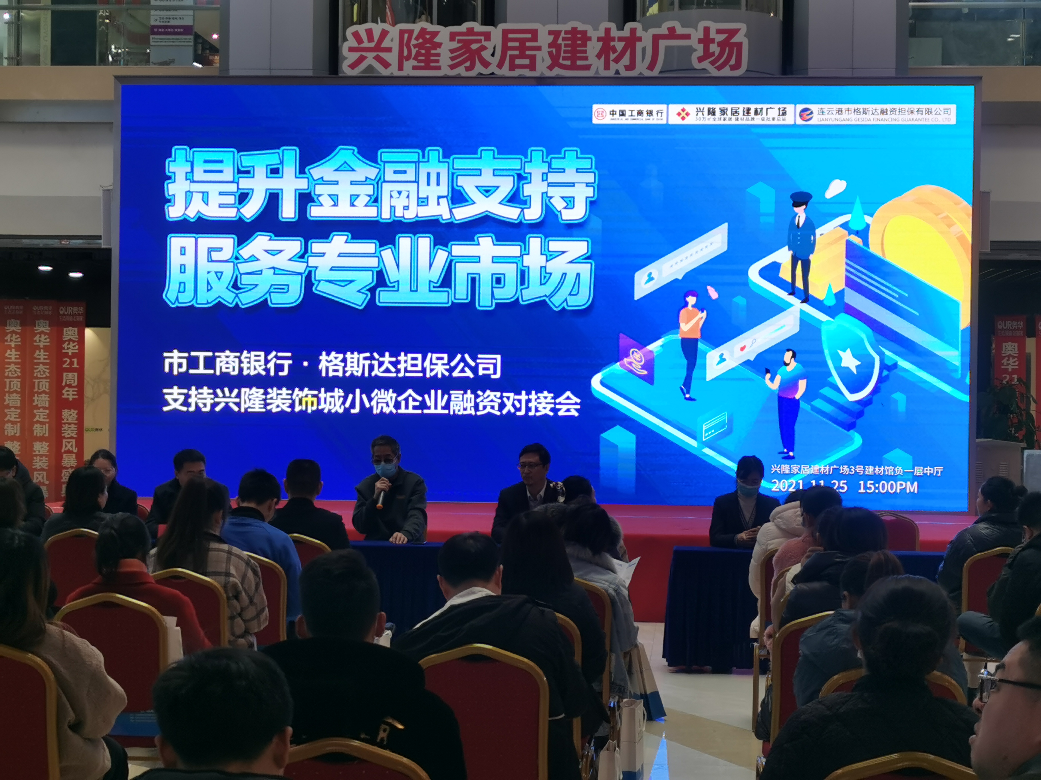 11月25日下午,格斯達公司聯(lián)合市工商銀行在興隆裝飾城舉辦了主題為“提升金融支持,服務(wù)專業(yè)市場”的小微企業(yè)對接會活動,深入貫徹落實黨中央、國務(wù)院關(guān)于改進小微企業(yè)等實體經(jīng)濟金融服務(wù)的部署要求。本次活動為興隆裝飾城的商戶提供了一個了解國家政策與我公司金融服務(wù)產(chǎn)品的平臺,通過現(xiàn)場講解、宣導與交流,深化銀企關(guān)系,為興隆裝飾城的小微企業(yè)融資發(fā)展提供良好的金融環(huán)境。 近50家商戶代表參與活動,活動共有三個環(huán)節(jié):首先,由興隆裝飾城總裁對本次活動的情況進行介紹。隨后,由工商銀行及我公司的產(chǎn)品經(jīng)理對小微企業(yè)重點金融服務(wù)進行宣講,包括融資擔保、小額貸款、應(yīng)急轉(zhuǎn)貸與產(chǎn)業(yè)基金等?;顒託夥諢崃?,多家商戶代表對我公司“富民創(chuàng)業(yè)貸”、“小微貸”等產(chǎn)品表現(xiàn)出濃厚的興趣,會后與產(chǎn)品經(jīng)理進行深入交流。 本次活動格斯達公司充分履行服務(wù)實體經(jīng)濟職能,優(yōu)化營商環(huán)境、提升小微企業(yè)融資能力,為支持連云港經(jīng)濟發(fā)展添磚加瓦! |