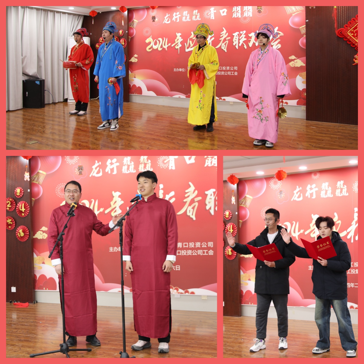 語(yǔ)言類節(jié)目更是好戲連臺(tái)。三句半《團(tuán)結(jié)一心謀發(fā)展》多角度、多方面展示了公司的高質(zhì)量發(fā)展和干部職工干事創(chuàng)業(yè)的十足勁頭。相聲《龍年說龍》包袱笑料不斷,博得了陣陣喝彩。充滿趣味的朗誦《我愛上班》用詼諧幽默的形式呈現(xiàn)了對(duì)工作的別樣感情,為觀眾帶來了無盡歡樂。