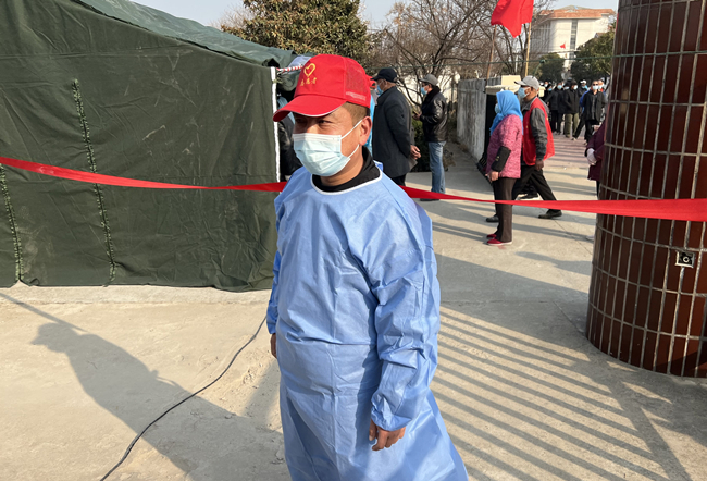 圖為黨員宋世園正引導居民做好核酸檢測準備工作