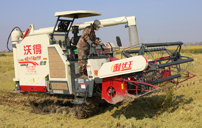 10月23日上午,在青口公司大新農(nóng)場(chǎng)萬畝農(nóng)田里,大片水稻已經(jīng)成熟,沉甸甸的稻穗隨風(fēng)搖曳。新品種試種示范田里收割機(jī)往來馳騁,拉開了秋收的序幕。