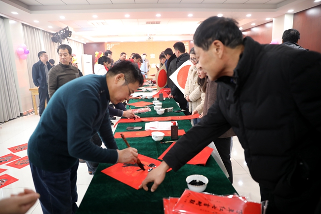 春節(jié)前夕,喜氣洋洋,為了營造祥和歡樂的節(jié)日氛圍,弘揚(yáng)中國傳統(tǒng)文化,公司邀請連云港市簡帛書法協(xié)會的老師們來到青口公司,義務(wù)為民寫春聯(lián),送祝福。
