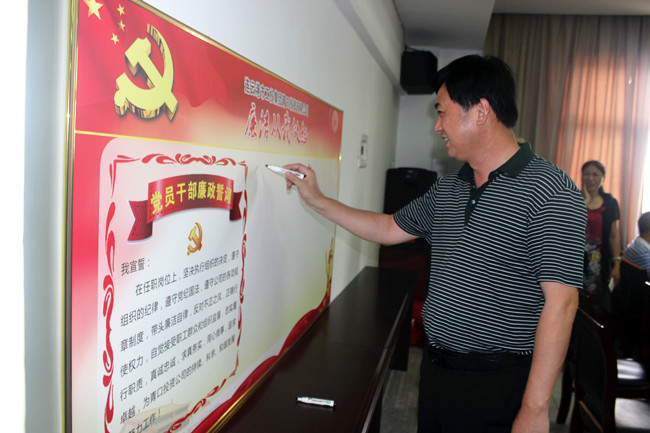 ? ? ??8月28日下午,一場別開生面的“青紀杯”廉政知識競賽在青口公司舉行。公司領(lǐng)導(dǎo)班子親臨現(xiàn)場為選手們加油鼓勁,各部室負責(zé)人及來自公司各單位、部門的60余名職工到場觀看了整場比賽。賽前,由黨委書記胡傳法帶頭,全體在崗黨員在廉政誓詞上進行簽名。