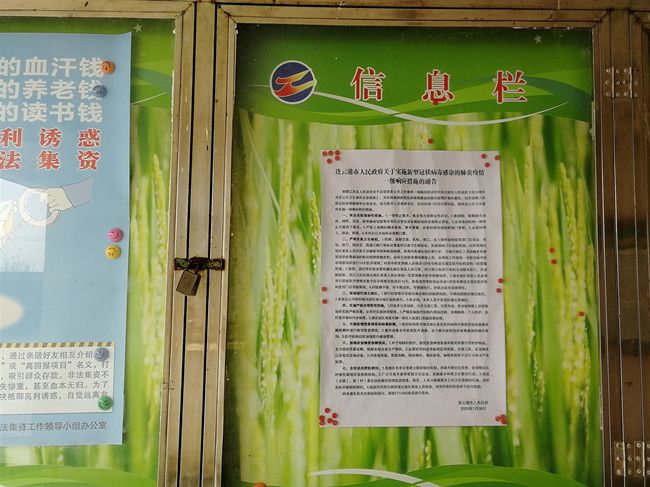 大新農(nóng)場(chǎng)接通知后,迅速組織會(huì)議,安排人員每天對(duì)轄區(qū)有無湖北人員回鄉(xiāng)過年情況進(jìn)行實(shí)時(shí)跟蹤,并將《連云港市人民政府關(guān)于新型冠狀病毒感染的肺炎疫情情況及一級(jí)響應(yīng)措施通告》以及防控疫情的措施張貼,積極宣傳如何采取防控措施和有關(guān)防治的常識(shí)。通過電話、QQ群、微信群、公開欄等方式及時(shí)通知到本單位職工群眾。并告知廣大職工群眾要依法接收網(wǎng)絡(luò)發(fā)布的相關(guān)信息,堅(jiān)決抵制不法信息,做到不信謠、不傳謠。按照公司要求,配合社區(qū)在公司主要路口設(shè)卡防控,督促轄區(qū)畜禽養(yǎng)殖場(chǎng):圣樹雞場(chǎng)做好消毒滅源工作。(尤冬冬)