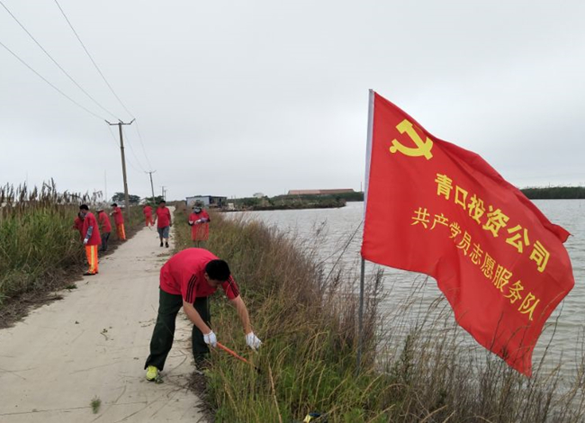 ? ? ? ?6月9日,生產(chǎn)生活服務(wù)中心支部黨員服務(wù)隊(duì)頂著初夏的炎熱,集結(jié)于養(yǎng)殖區(qū)道路、附河沿岸,開(kāi)展“扛紅旗、建新功、當(dāng)先鋒”實(shí)踐活動(dòng),大家手持鐵锨、鐮刀、掃帚等工具,鏟除雜草、撿拾垃圾、清掃路面。大家分工明確、行動(dòng)有序,鏟的鏟、掃的掃,各司其職,充分發(fā)揮不怕臟、不怕累的奉獻(xiàn)精神,為職工群眾營(yíng)造暢通、舒心的工作生活環(huán)境。(宋世園)