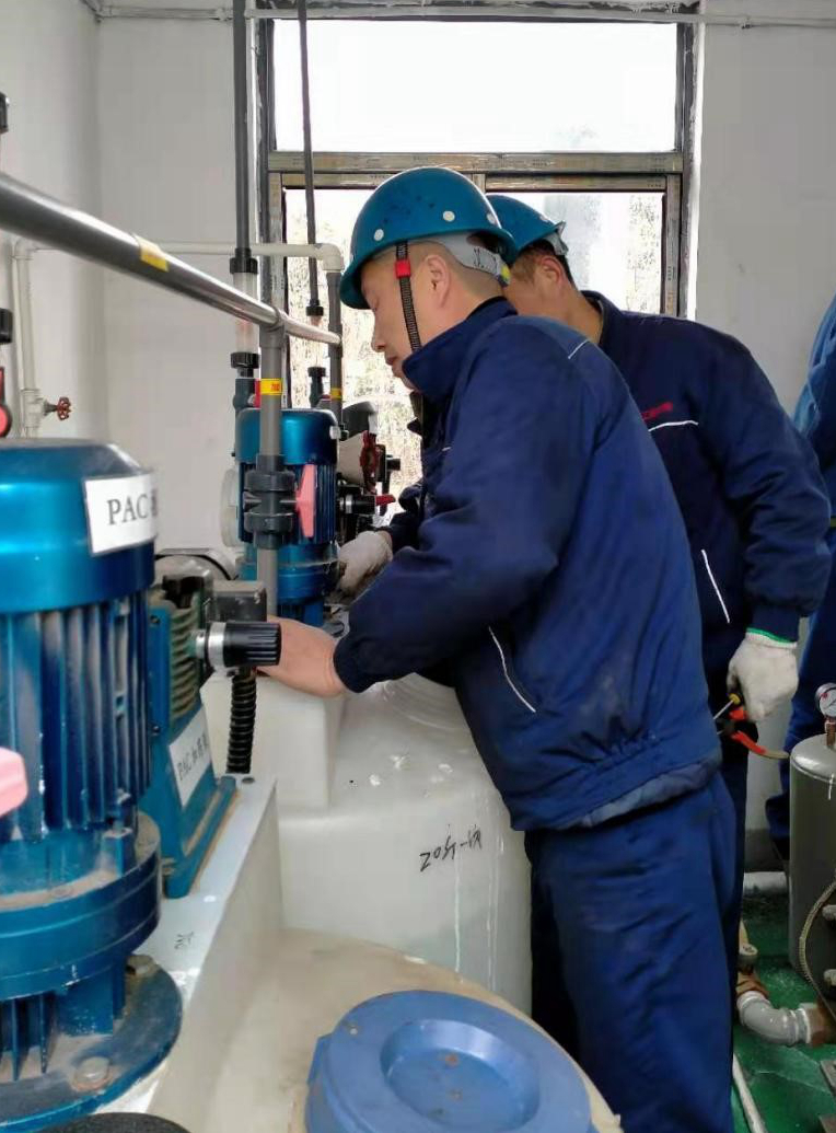 為嚴(yán)格遵守環(huán)境保護法,盡好保護環(huán)境的企業(yè)責(zé)任,公司配置了24小時運轉(zhuǎn)污水處理設(shè)施,確保不讓一滴污水不達標(biāo)外排。(圖為2月23日上午,員工定期維護污水站設(shè)備現(xiàn)場。)