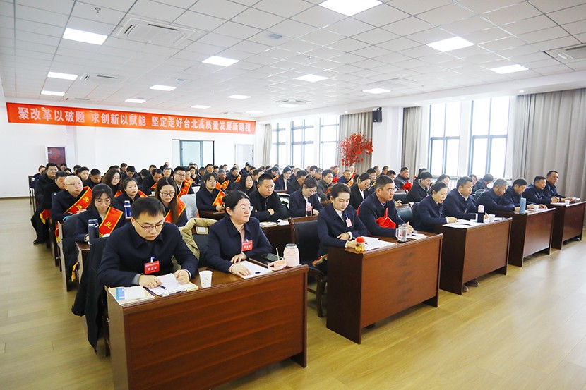 2月19日上午,臺北(華茂)公司二屆六次職代會暨2024年度表彰大會在環(huán)保裝備產業(yè)園五樓會議室隆重召開,會議總結2024年工作,分析研判形勢,部署2025年工作。來自臺北(華茂)共94位職工代表、5位列席代表參與會議。黨委書記、董事長王德志作“聚改革以破題、求創(chuàng)新以賦能,堅定走好臺北高質量發(fā)展新路程”的講話,總經理卞霄作《工作報告》。會議由公司黨委副書記、工會主席傅健主持。