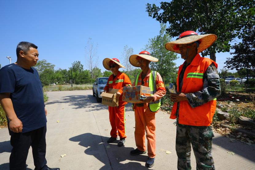 高溫下的熱情,用關(guān)愛撫慰人心。公司工會持續(xù)開展“夏送清涼保安康”活動,先后到先鋒東灘、躍湖路、東方大道、黃海大道等作業(yè)現(xiàn)場,慰問不畏高溫,不懼辛苦奮戰(zhàn)在高溫現(xiàn)場的干部職工,為在高溫天氣下堅守崗位的職工們撐起一片綠蔭。把清涼的飲用水、綠茶和綠豆湯,以及防暑降溫藥品送到職工手中,親切地囑咐職工們做好自我防護,提醒大家在戶外作業(yè)的同時要注意防暑降溫,注重作業(yè)安全和身體健康。