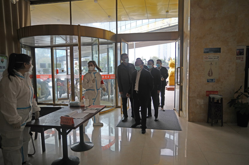 進(jìn)入辦公區(qū)后,丁銳一行對臨時(shí)辦公區(qū)的辦公氛圍表示贊賞,各部門門牌張貼到位,管理制度上墻,特別是疫情防控制度全面到位。同時(shí)隨機(jī)來到工作人員宿舍,檢查了內(nèi)衛(wèi),對工作人員表示了慰問。