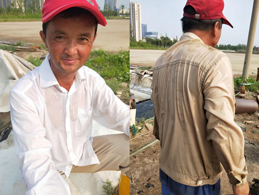 礦鹽班組,搶抓汛期難得的晴好天氣,清晨5點(diǎn),就在灘地上忙碌起來(lái),汗水模糊了雙眼,額頭的汗水順著帽檐往下滴落,身上的衣服一直都是濕漉漉的。