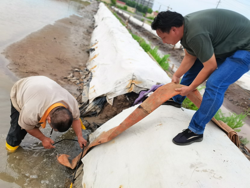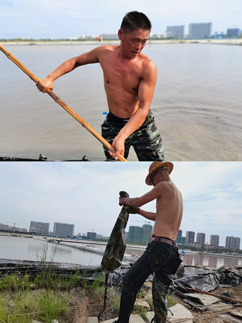 先鋒泵站,程輝師傅撩起工作服擦了擦臉上的汗水,繼續(xù)將潛水泵安置到已廢棄的灘地里,把灘地里的雨水抽干,將廢棄的灘地利用起來(lái)晾曬低濃度的鈣液,解決銷售旺季成品鈣液供不應(yīng)求難題。