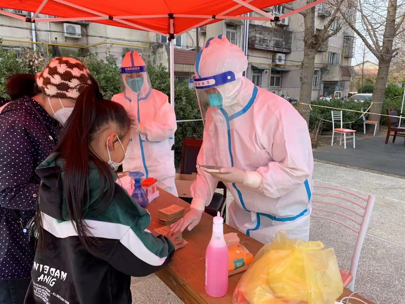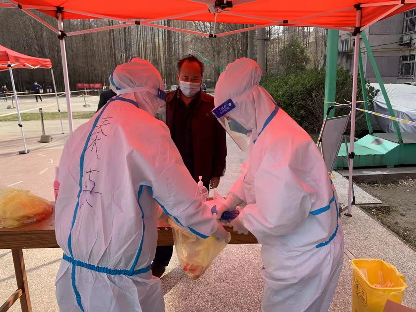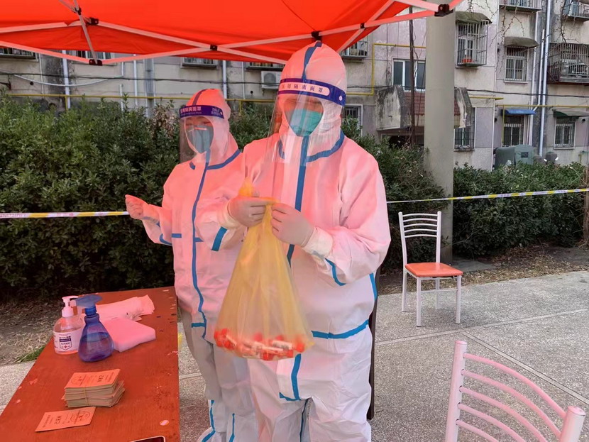 然而隨著疫情越發(fā)嚴(yán)重,小區(qū)核酸檢測員人手又緊張了起來,“我可以,這幾天我都學(xué)會了,最基本的我都會”秦英又是第一個舉手到最前線。這下她更忙了,每天凌晨三點起床做飯,五點社區(qū)報到,一直堅守到晚上八點。為了節(jié)省防護服,她一般都要等到中午2點多鐘才休息吃飯,這股毅力讓社區(qū)、街道領(lǐng)導(dǎo)看在眼里,服在心上,連一直牢騷怪話的幾個群眾也為她由衷地豎起大拇指。
