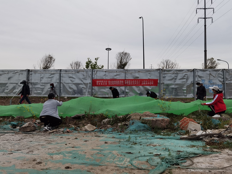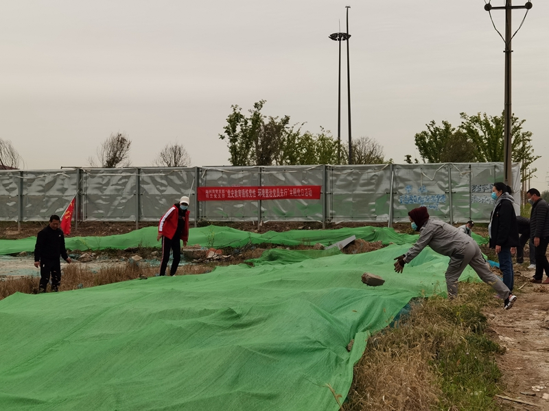 翔立分公司黨支部攜手海州灣公司黨支部對(duì)公司的車站小灘進(jìn)行環(huán)境整治,為裸露在外的土地進(jìn)行防塵網(wǎng)鋪設(shè)。