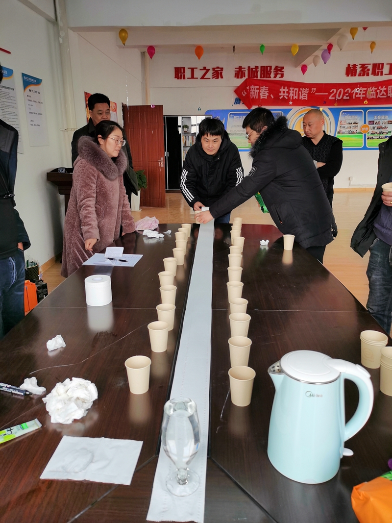 臨達(dá)公司工會(huì)組織開(kāi)展了“迎新春、共和諧”職工聯(lián)誼會(huì)。本次活動(dòng)以“益智娛樂(lè)、休閑健康”為主旨,設(shè)置群龍奪水、你比我猜、卷紙大作戰(zhàn)、繞口令等四個(gè)游戲項(xiàng)目?,F(xiàn)場(chǎng)用氣球、橫幅等布置,洋溢著濃濃的節(jié)日氛圍。