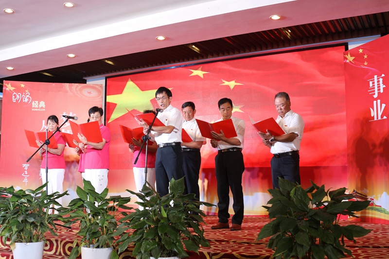 在莊嚴(yán)地國(guó)歌聲中,演出拉開了序幕。15組參賽選手用他們真摯的情感、優(yōu)美的語言,歌頌新中國(guó)71年來取得的輝煌成就,表達(dá)自己對(duì)黨、對(duì)國(guó)家、對(duì)人民的熱愛?!抖Y贊新時(shí)代,賀彩我中國(guó)》,四位表演者用激昂語言帶大家回顧了今年的“大事件”,中國(guó)早已不是1842年的樣子,現(xiàn)在的中國(guó)有能力,更有信心來應(yīng)對(duì)百年未有之大變局;在東方,有一條騰飛的巨龍,在東方,有一個(gè)巨龍的民族——《讀中國(guó)》,這就是華夏中國(guó),讓我們?cè)?/span>“紅旗漫卷的西風(fēng)中,讀繁榮昌盛的中國(guó)”;《習(xí)近平談治國(guó)理政(第三卷)》的出版是我們繼第一卷、第二卷之后又一個(gè)人生的指路明燈,讀后感想《珍惜韶華,不負(fù)青春》中,朗誦者聯(lián)系企業(yè)發(fā)展,向大家傳述了只有要擼起袖加油干,才能“珍惜韶華,不負(fù)青春”;《不朽》,五星紅旗凝聚了奮進(jìn)的力量,五星紅旗迎風(fēng)飄揚(yáng),逐夢(mèng)航程,書寫出不朽的豐功偉績(jī)······在臺(tái)北有一群老干部、老黨員,退崗不退休,彰顯新作為,為企業(yè)發(fā)展出謀劃策,為臺(tái)北和諧穩(wěn)定貢獻(xiàn)力量,老黨員們帶來的詩歌朗誦為整場(chǎng)演出畫上了圓滿的句號(hào)。