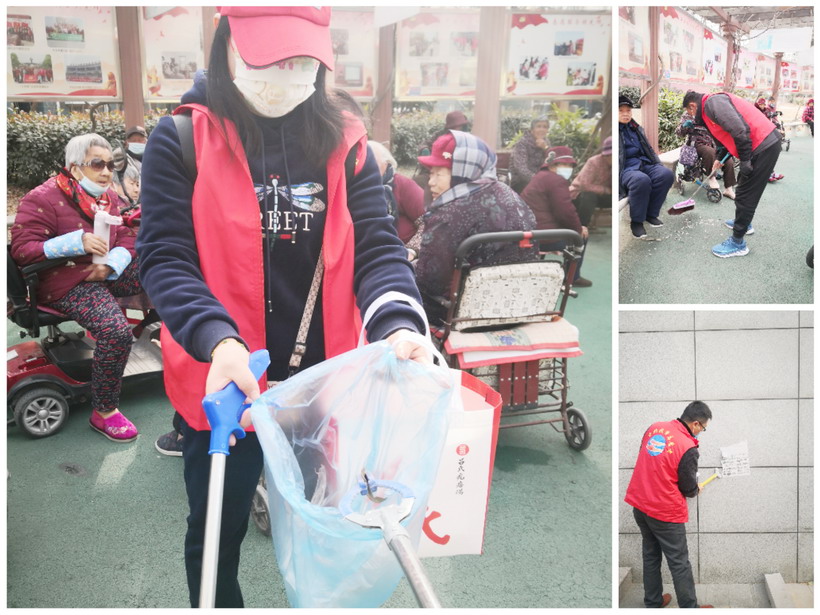 這次學雷鋒志愿活動,主要是針對小區(qū)內(nèi)的居民活動小廣場及周邊的環(huán)境衛(wèi)生進行清理。到達指定地點,志愿者們拿出自備鏟刀、掃帚、塑料袋等工具,分頭行動。你來鏟,我來掃、他來撿,不到一會,小廣場的草坪里紙屑、瓜子、果核、廊柱上的小廣告已經(jīng)在志愿者們的手中“不翼而飛”,瞬間,草坪、地面已換了新顏,恢復了它原本應(yīng)有的干凈、整潔面貌。