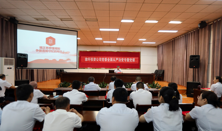 ? ? ? 會(huì)上,投資公司黨委書記、董事長(zhǎng)、總經(jīng)理莊清付以《強(qiáng)化紀(jì)律規(guī)矩、提高執(zhí)行能力》為題,給與會(huì)人員上了一堂全面從嚴(yán)治黨專題黨課。