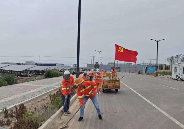 6月21日,該黨支部近30余名黨員在支部的感召下,匯集于新區(qū)節(jié)能一路道路兩邊。勞動現(xiàn)場,黨員生產骨干姚功身先士卒,無懼泥土粉塵揚起,揮汗清理,不怕臟、不怕累,不放過任何衛(wèi)生死角。勞模張學軍與老黨員徐習東相互配合,打包,裝車, 及時轉運各類垃圾達50多袋,清掃路面積土近1500米長,大家分工明確,重活臟活搶著干。隊員們齊心協(xié)力,用實際行動詮釋黨員吃苦在前、勇于擔當?shù)姆瞰I精神。經過四個多小時清理,主干道及周邊道路垃圾、雜草、泥土全部清理干凈,高質量完成奉獻勞動,鮮艷的黨旗在陽光的照耀下顯得格外閃亮。(楊波)