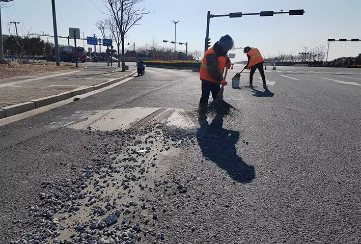 燈塔路路口,巡查人員發(fā)現(xiàn)大面積車輛拋灑物,生產(chǎn)骨干張學(xué)軍、徐習(xí)東、陸永柱接到公司應(yīng)急處理電話第一時間趕赴現(xiàn)場,盡管天氣寒冷,但是大家干的熱火朝天,共清理泥塊30多處,長達(dá)800多米長;轉(zhuǎn)運(yùn)石子、石塊50多車,他們再次用行動彰顯黨員示范風(fēng)采。