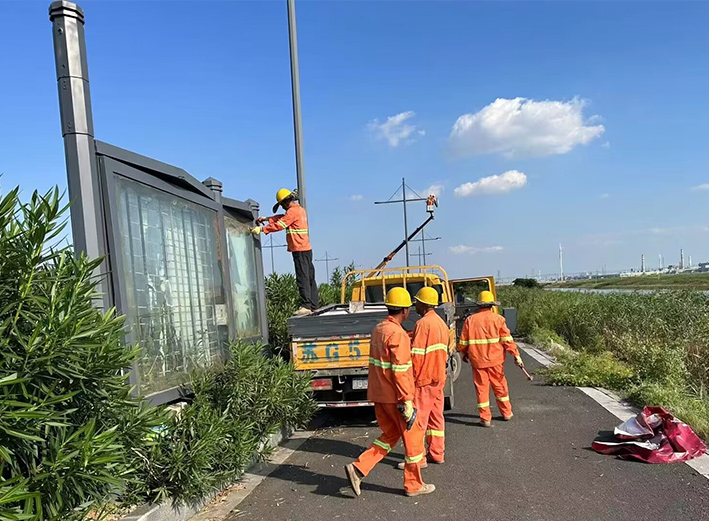 為更好凈化“馬拉松”沿線路域環(huán)境,近日,市政分公司依法集中對(duì)海濱大道沿線13處銹蝕嚴(yán)重廣告牌進(jìn)行拆除,保障了民眾出行安全,美化了城區(qū)環(huán)境。