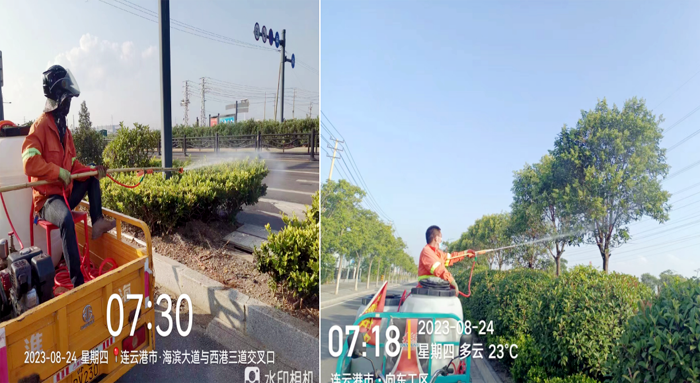 8月23日,綠化分公司管養(yǎng)轄區(qū)內(nèi)進行植物病蟲害專項檢查。檢查中發(fā)現(xiàn)徐新路、228國道、南京路、上海路等出現(xiàn)病蟲害,造成苗木一定的枯死、病害。該分公司根據(jù)苗木習(xí)性迅速制定整改方案對癥下藥,實行按片劃分,責(zé)任到人。各班組抓住病蟲害防治的有利時機,嚴格執(zhí)行農(nóng)藥安全使用規(guī)定,采用生物制劑等低毒高效農(nóng)藥,嚴格控制用藥比例,利用機動噴霧器等工具進行噴灑農(nóng)藥。對枝干害蟲較嚴重的樹木,進行重點清理,增加噴藥次數(shù),全方位控制病蟲害疫情的擴大和蔓延,有效保護了徐圩新區(qū)綠化植被的健康生長。噴灑農(nóng)藥結(jié)束后,藥罐統(tǒng)一回收,按要求處理,預(yù)防二次污染。