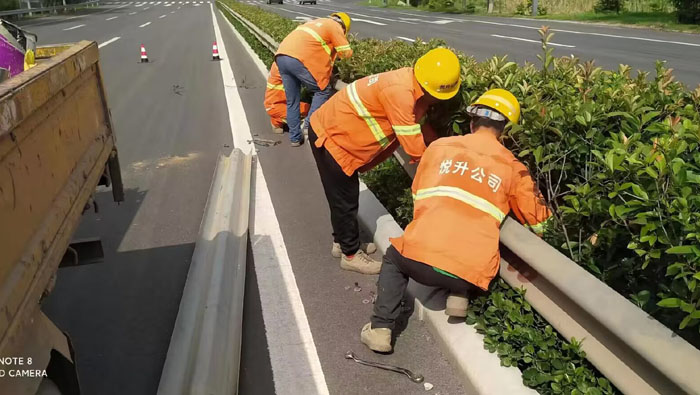 維修現(xiàn)場(chǎng),道路養(yǎng)護(hù)工人正在徐新路靠近242省道處更換一處波形護(hù)欄,隊(duì)員們手持專用工具快速、高效施工,順利更換波形鋼護(hù)欄2節(jié),總長(zhǎng)8米,及時(shí)消除了安全隱患,有效維護(hù)道路安全暢通。本次對(duì)徐新路沿線轄區(qū)波形護(hù)欄搶修,嚴(yán)格按照城建部門要求,對(duì)中斷的道路護(hù)欄要求維修人員及時(shí)進(jìn)行給予補(bǔ)接,對(duì)個(gè)別出現(xiàn)嚴(yán)重?fù)p壞的護(hù)欄進(jìn)行拆除換新。此次共完成徐新路沿線4處地段波形護(hù)欄更換工作。更換護(hù)欄8節(jié),32米。達(dá)到道路設(shè)施齊全、安全、美觀目的。(楊維軍)
