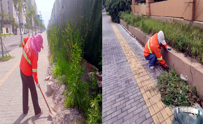 ? ? ? 道路保潔“無所畏懼”。 黑色柏油馬路上,熱浪滾滾,橙色工作服在強(qiáng)烈陽光照耀下顯得格外引人注目。女子班,228班組保潔人員在班長龔飛、姚功帶領(lǐng)下,肩背除草機(jī),雙手緊握長長的操作手柄,高速旋轉(zhuǎn)的打草帶,將雜亂草葉打斷、甩開,不一會(huì),就“收割”上海路生活區(qū)周邊雜草20多處;人工清掃裝運(yùn)施工車輛拋灑石子、泥土30余車,擦洗站臺(tái)座椅30多個(gè),清掏果皮箱200余只,盡心盡職完成突擊保潔任務(wù)。