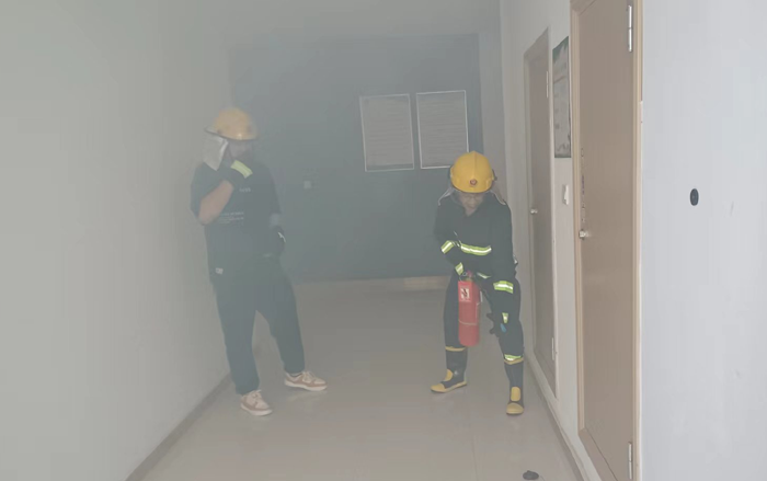 本次演練模擬公司辦公樓三樓電纜井因電路故障引發(fā)火情組織職工開(kāi)展應(yīng)急疏散。 “起火啦!”15時(shí)許,辦公樓三樓一電纜井內(nèi)突然涌出滾滾濃煙。臨近人員發(fā)現(xiàn)著火后,第一時(shí)間使用滅火器進(jìn)行撲救。濃煙觸發(fā)自動(dòng)報(bào)警裝置,消防控制室值班人員接到警報(bào)后,立即通知志愿消防隊(duì)伍趕赴現(xiàn)場(chǎng)撲救,并撥打報(bào)警電話,向應(yīng)急指揮部報(bào)告。公司應(yīng)急指揮部立即啟動(dòng)應(yīng)急預(yù)案,滅火搶救組、安全救護(hù)組、緊急疏散組等應(yīng)急小組隨即到位,有條不紊開(kāi)展滅火、疏散等工作。消防救援隊(duì)伍到達(dá)現(xiàn)場(chǎng)后,接過(guò)現(xiàn)場(chǎng)指揮權(quán),開(kāi)展滅火救援。安全搶救組搜索受傷人員,并對(duì)受傷人員簡(jiǎn)單急救后送往醫(yī)院進(jìn)行治療,緊急疏散組立即組織辦公大樓人員,用濕毛巾捂住口鼻從應(yīng)急通道撤離。10分鐘后,險(xiǎn)情排除,應(yīng)急救援結(jié)束。最后,組織部分人員開(kāi)展滅火實(shí)操演練
